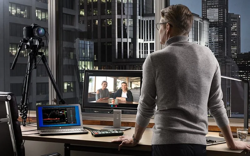 Nos vimos obligados a mejorar drásticamente las presentaciones de negocios virtuales y abocarnos a soluciones que permitan switchear entre tomas generales de la audiencia, primeros planos del presentador y presentaciones en Power Point, en incluso superponer imágenes, y transmitir LIVE el programa, o grabarlo y publicarlo posteriormente.